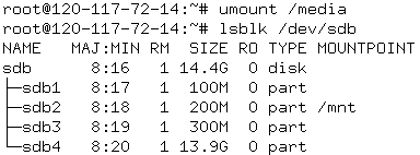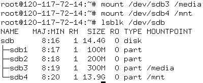 第一個分割區掛載到 /media ,第二個分割區掛載到 /mnt