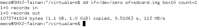 dd if=/dev/zero of=sdcard.img bs=1G count=1