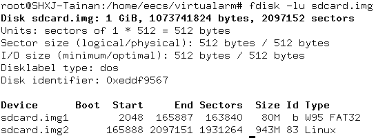 先用 fdisk 觀察一下 sdcard.img 檔案