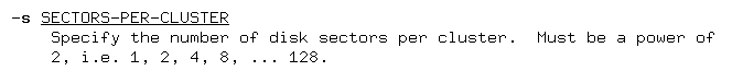 - -s 是每一個區塊有多少個 Sectors(以這裡的例子來說是 2 個)