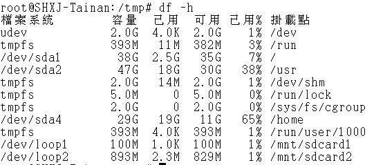 - 92-93 把分割區1、2掛載到 /mnt/sdcard1、/mnt/sdcard2 上