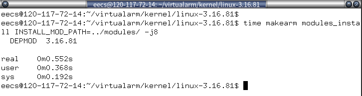 time makearm modules_install INSTALL_MOD_PATH=../modules/ -j8