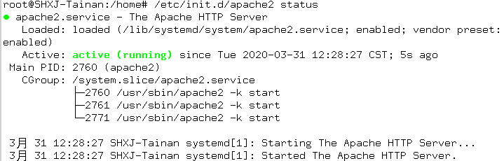 2. 輸入以下指令確認伺服器已經啟用 (綠色 active 表示正常運作)