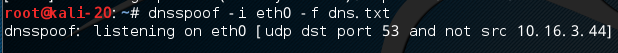 dnsspoof -i eth0 -f dns.txt