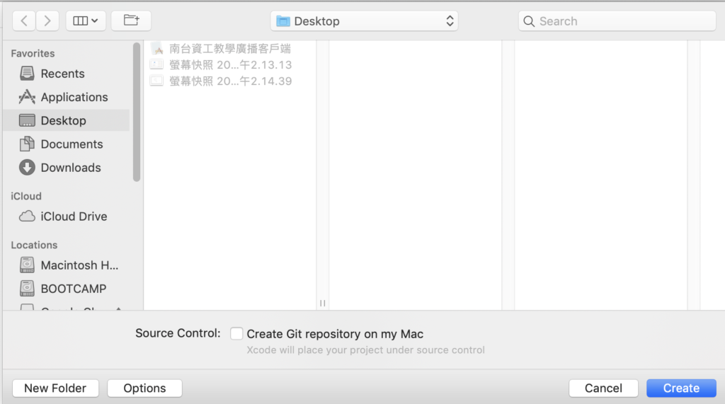 將 Create Git repository on my Mac 選項解除勾選,按下 Create