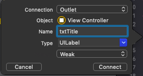 再來會出現這個視窗,直接輸入名稱 txtTitle 並且按下 Connect