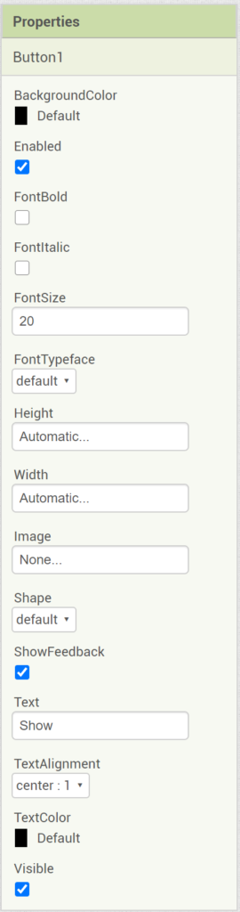 將 Button 元件的屬性 FontSize 設定為 20,Text 修改為 Show