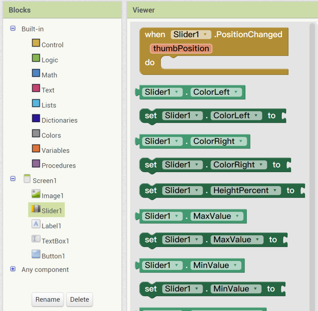 將 Slider1.ThumbPosition 拉到剛剛建立的 width 與 Height 後面