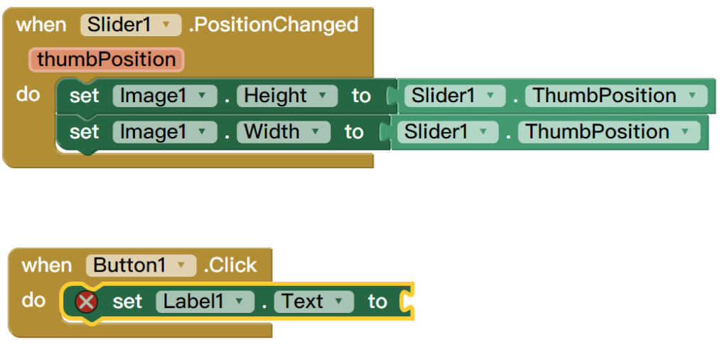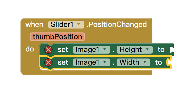 將 set Image1.Height to 以及 set Image1.Width to 拉到剛剛建立的事件裡面
