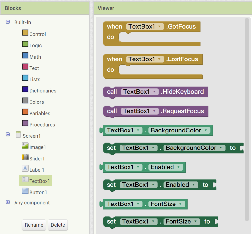 選擇 TextBox 元件