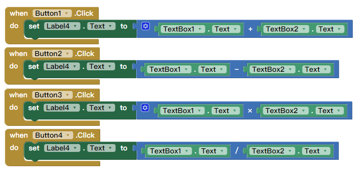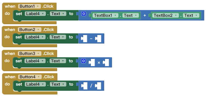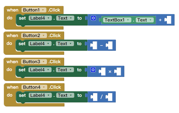 分別為 「when Button1.Click」「when Button2.Click」「when Button3.Click」「when Button4.Click」