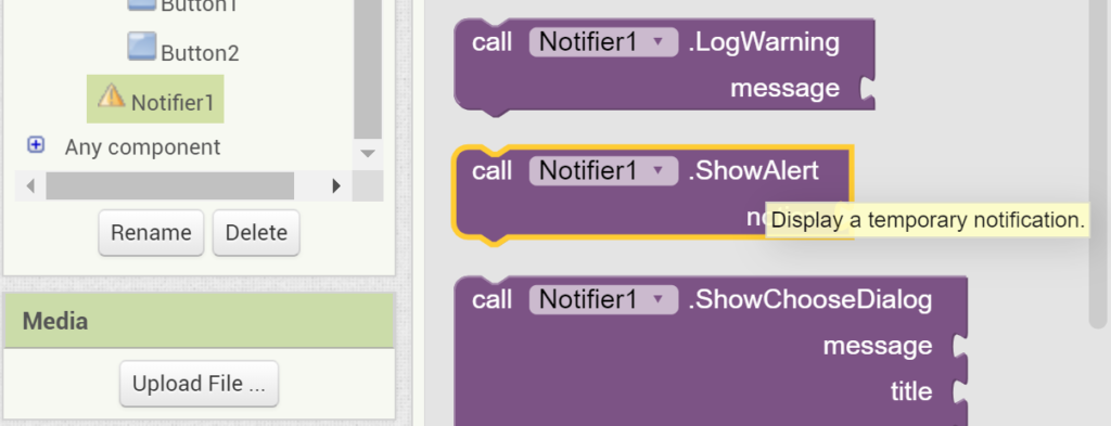 一樣選擇 Notifier1 底下的 ShowAlert notice