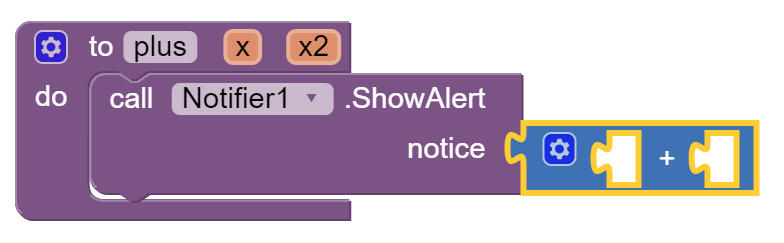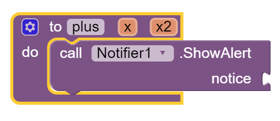 左邊的 Notifier1 選擇 .ShowAlert notice 放到剛剛定義的 plus 程序裡面