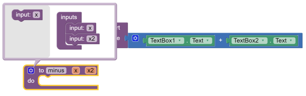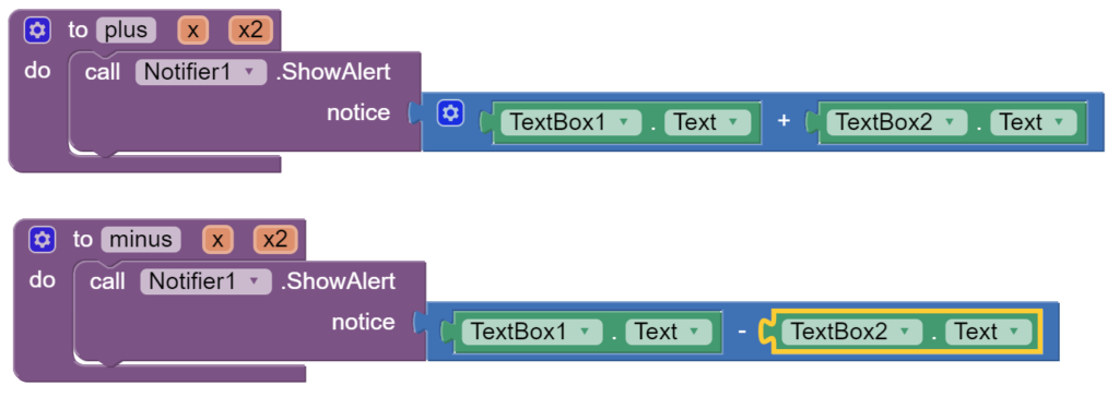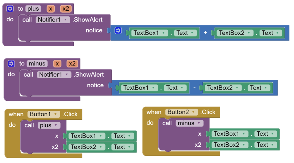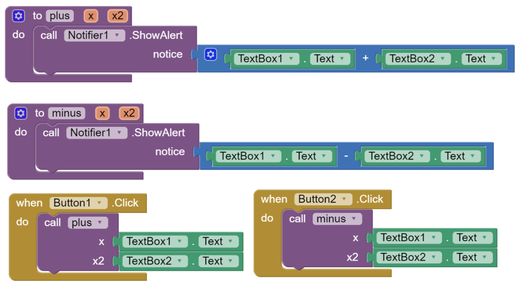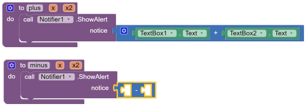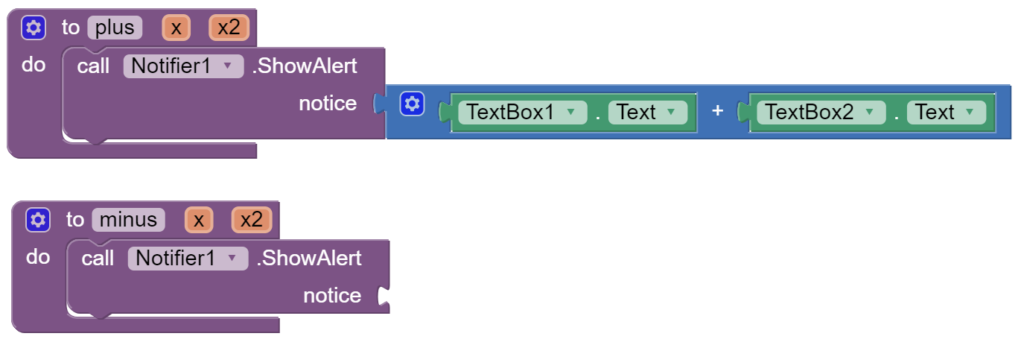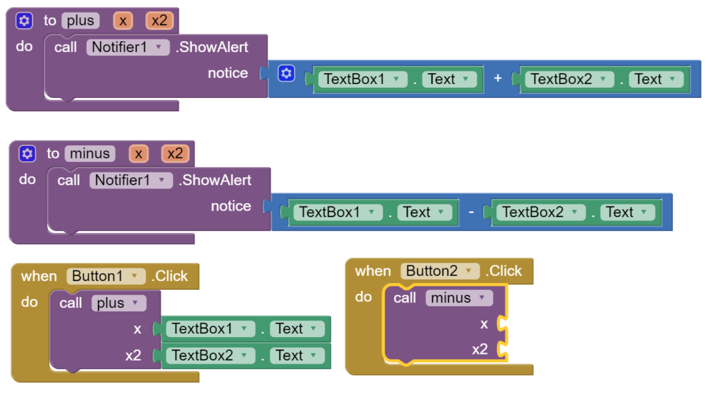 點擊 Procedures (程序) 選擇 call plus 放到 when Button1.Click 裡面
