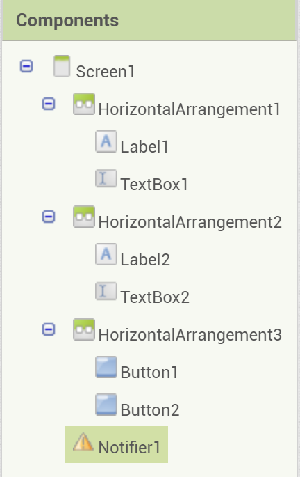 選擇 Layout 拉三個 HorizontalArrangement 到螢幕上