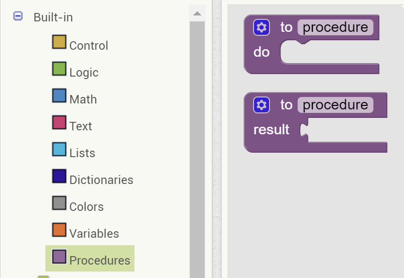 點擊左邊的 Procedures (程序) 選擇 to procedure do 到螢幕上