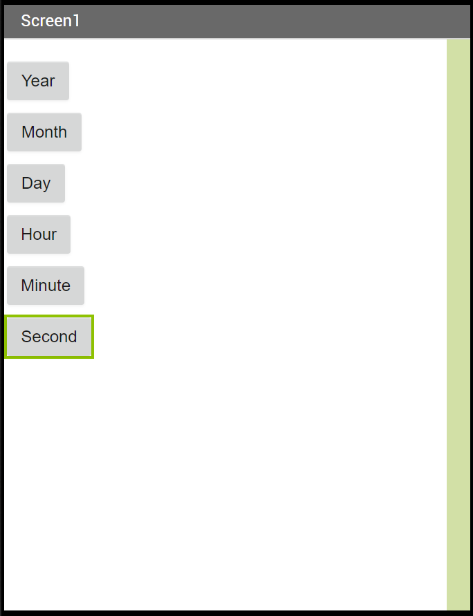 將 Label1 的文字設定成空字串,六個按鈕文字分別設定為 Year Month Day Hour Minute Second