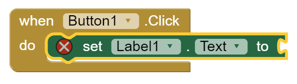 選擇 When Button1.Click 放到畫面上,裡面放上 set Label1.Tetx to