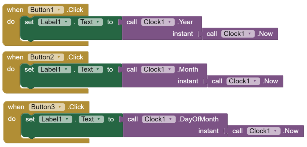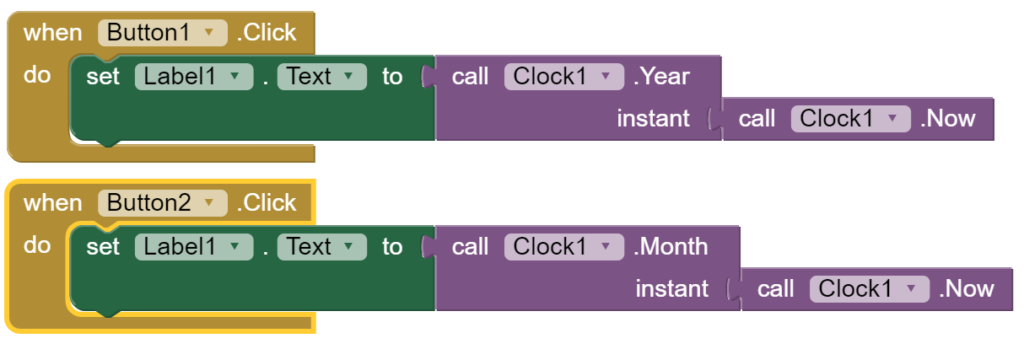 再點擊 Clock1 元件裡面的 call Clock1.Now 放到 instant 後面