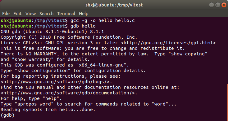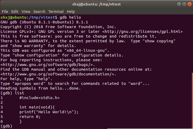 編輯一個檔案 hello.c ,並輸入以下的程式碼