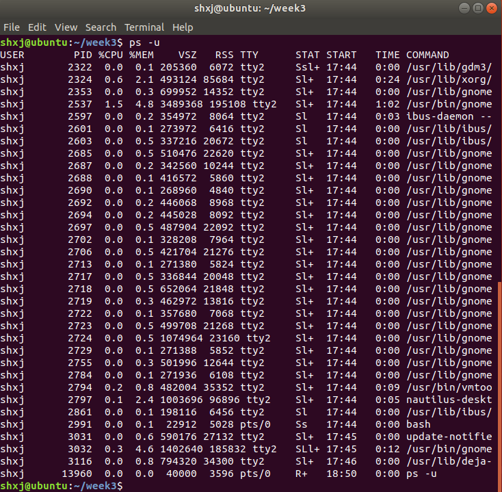 ps -u