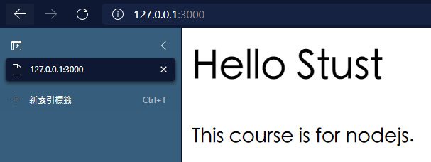 將伺服器停止(Ctrl+C),並且將程式碼中的 World 改成 Stust