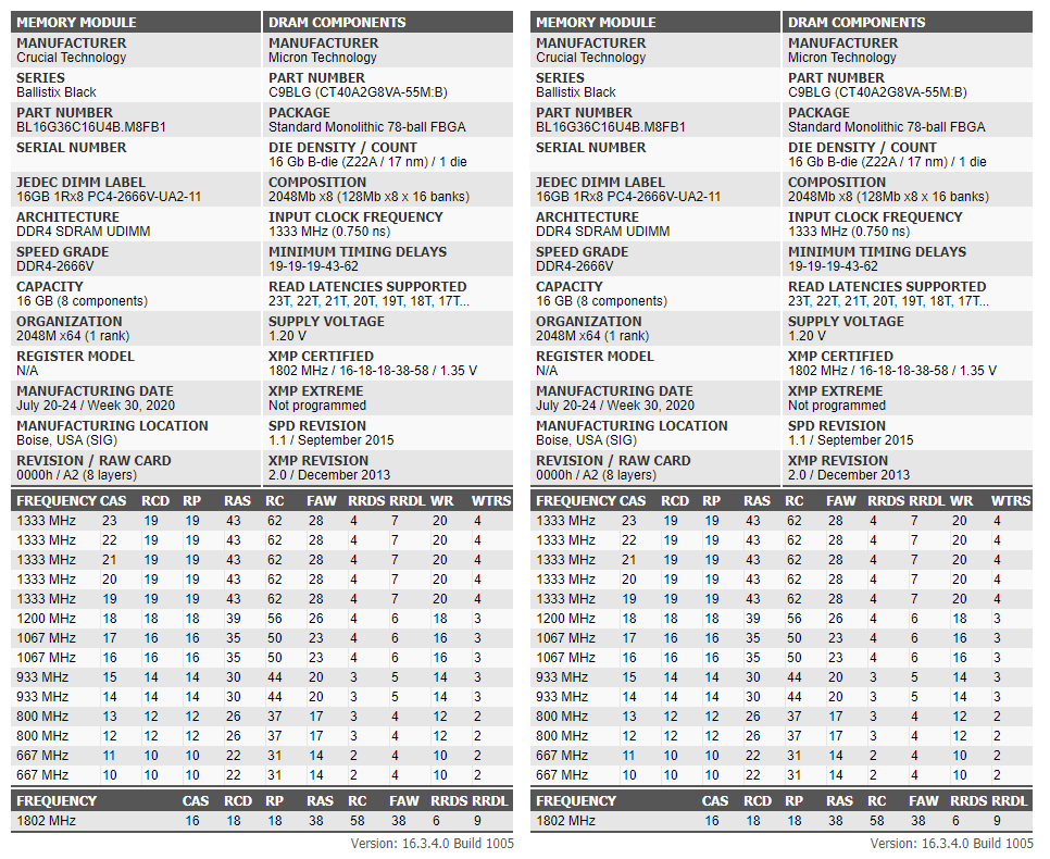 附上兩條記憶體 SPD 內容 ( SERIAL NUMBER 已碼掉 , 軟體 : Thaiphoon Burner )