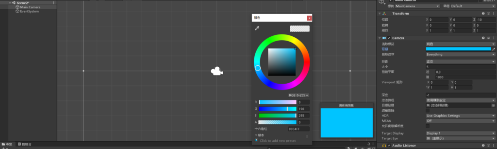 先編輯 Scene1 ,點兩下進入修改 Scene1 的背景顏色