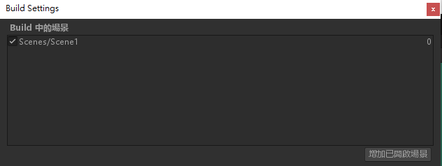 依序按下「檔案」「建置設定..」將 Scene1 加入