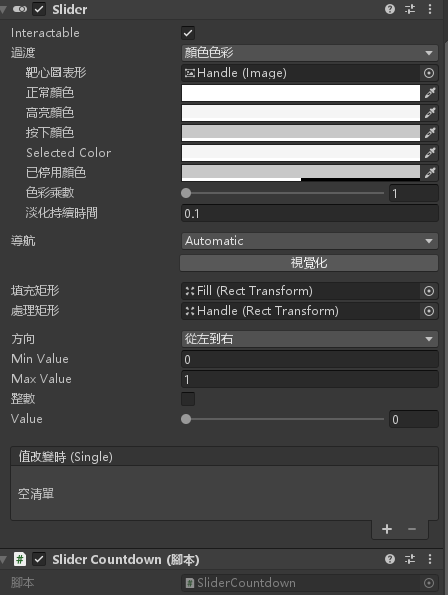 在 Scene2 加入 Slider 以及倒數計時並跳回 Scene1