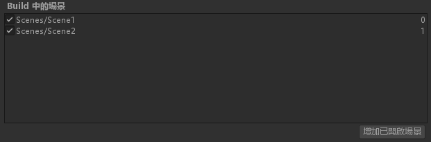 依序按下「檔案」「建置設定..」將 Scene2 加入