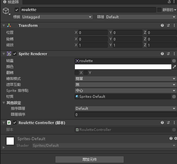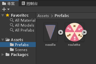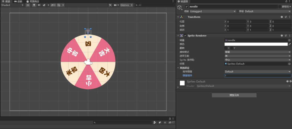同樣的將 needle (指針) 拉進階層視窗,並設定屬性位置為 0,3,0,圖層順序1