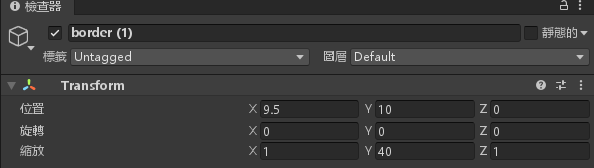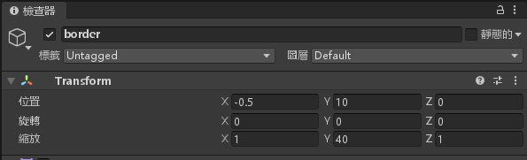 將 border 物件的位置 X = -0.5,Y = 10,縮放 Y = 40