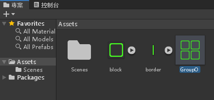 將 GroupO 拉到專案資料夾製作預製物件