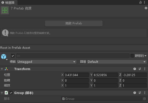 新增一個 Group.cs 腳本,輸入以下程式碼