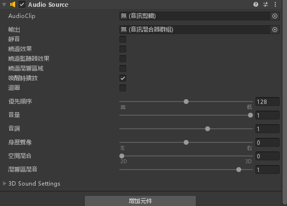 將 MainCamera 增加元件>音訊>音訊源
