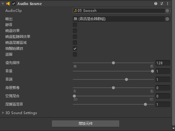 將 AudioClip 設定為 05_Swoosh.mp3