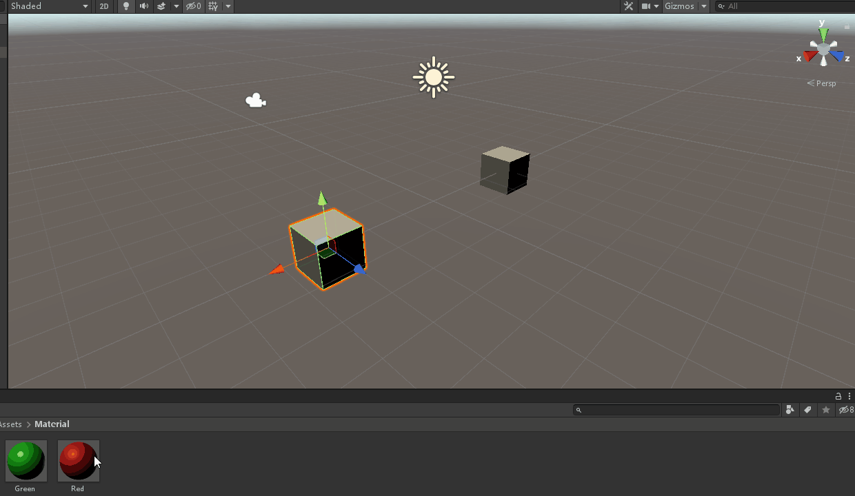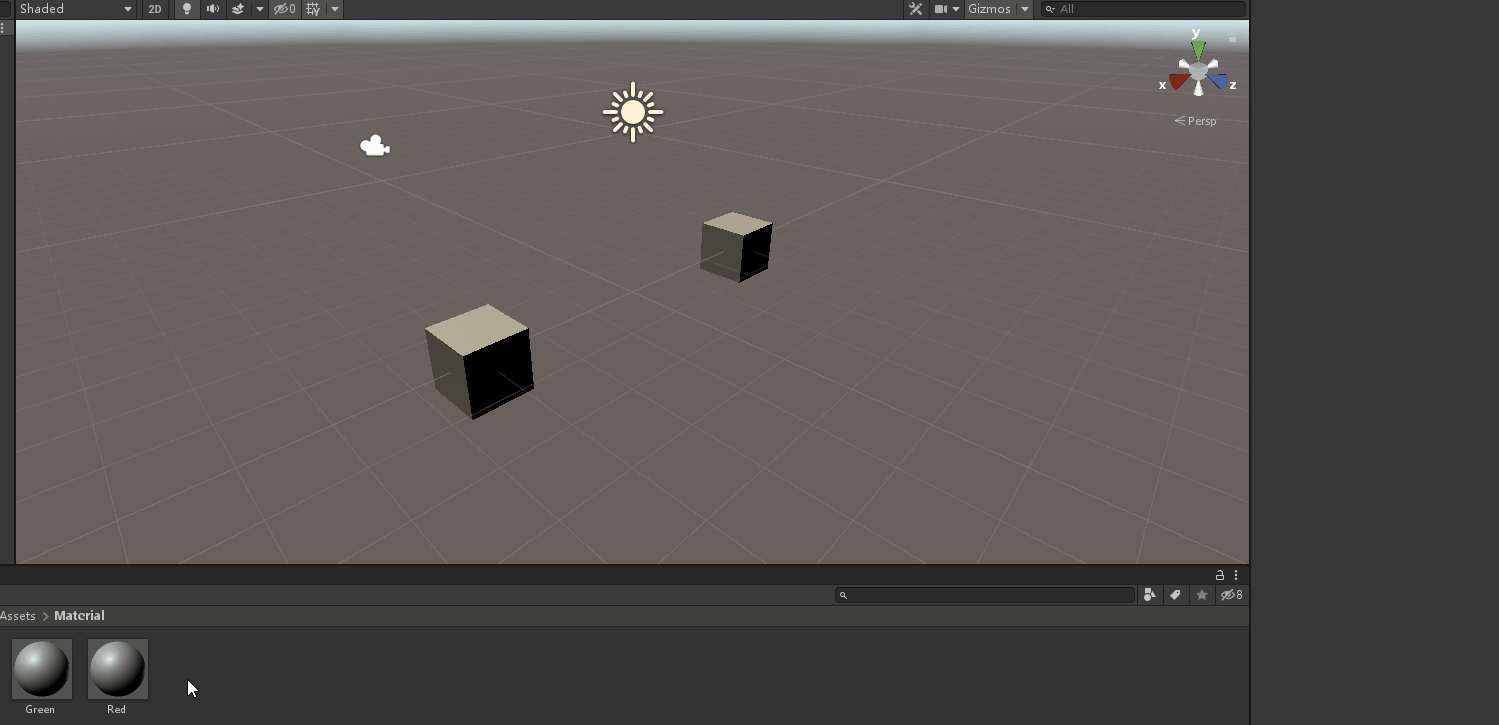 首先「Cube1」是紅色、再來「Cube2」是綠色