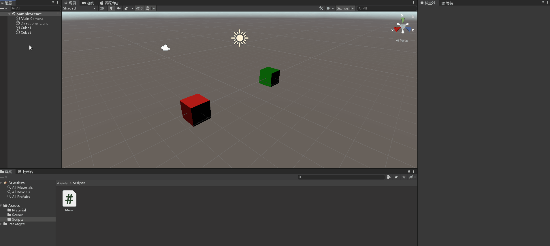 將 Move 腳本拖曳進「Cube1」以及「Cube2」物件內