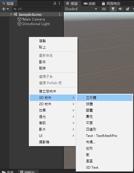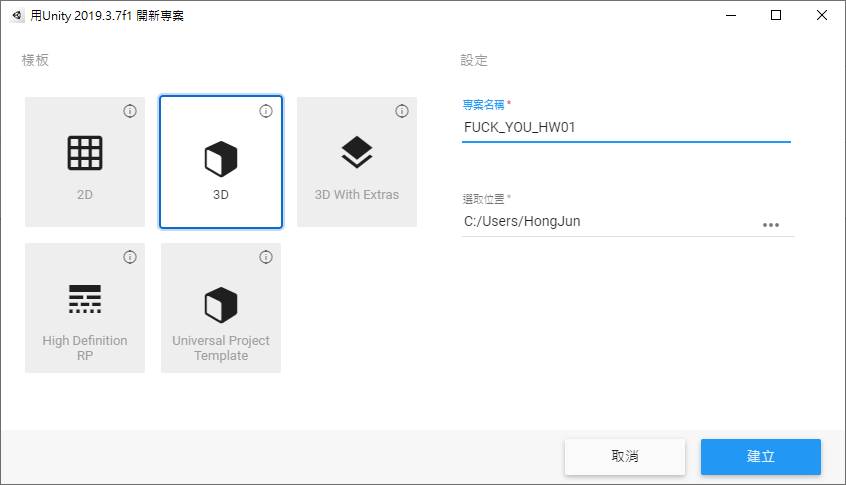 開啟一個新專案 (3D專案)