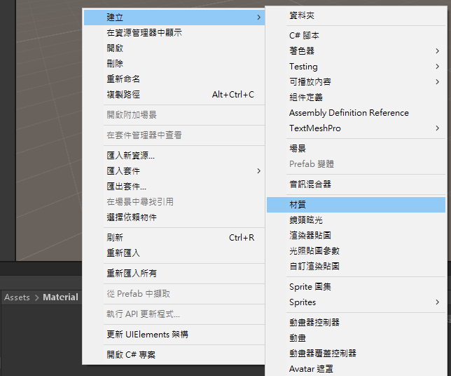 輸入名稱「Material」用以存放資源檔案