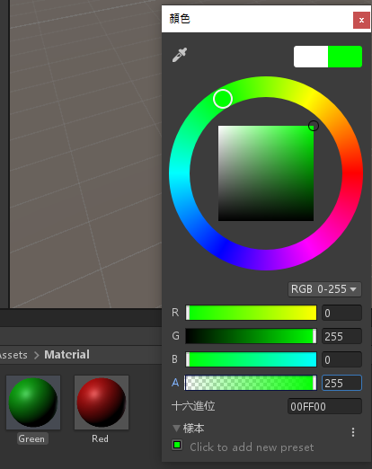 再次使用相同方法建立一個「Green」材質