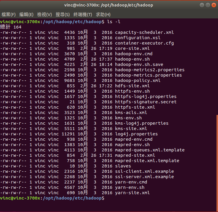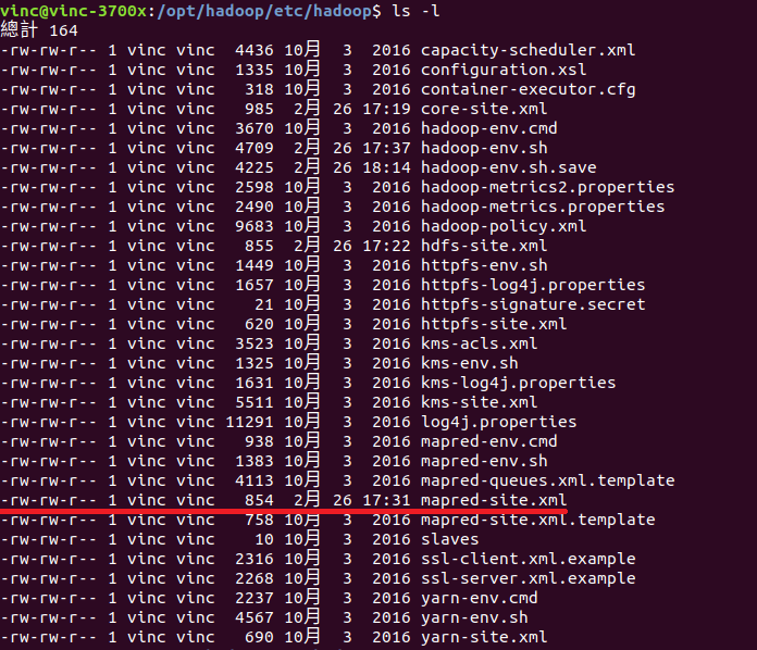 切換目錄至 /opt/hadoop/etc/hadoop/