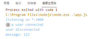 重新啟動伺服器,並且在網頁中送出訊息,即可在伺服器端看到訊息