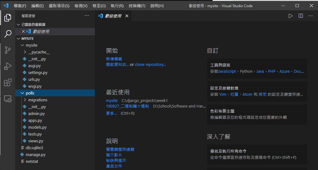 再來按照上個禮拜的文章,建立一個 polls 模組