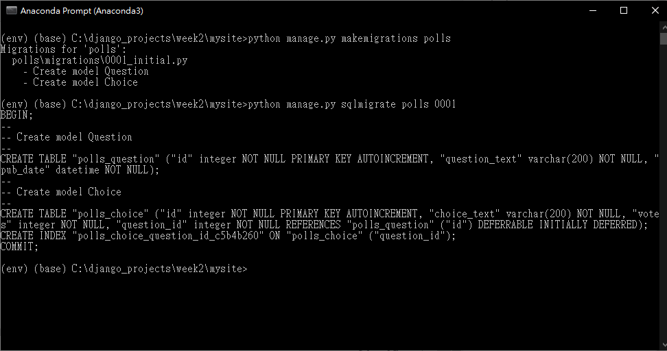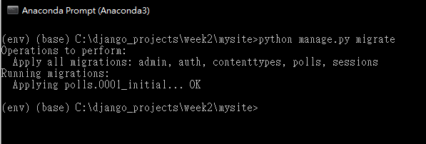 執行以下的指令,告訴 django 我們對於模組有做了一些更改