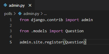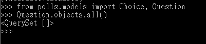 但是後台沒有看到剛剛我們建立的資料,所以要修改一下 polls/admin.py 檔案