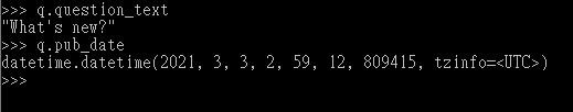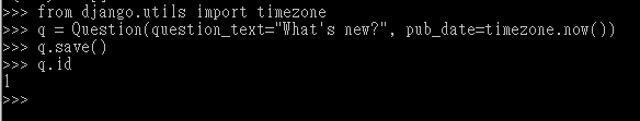 q = Question(question_text="What's new?", pub_date=timezone.now())