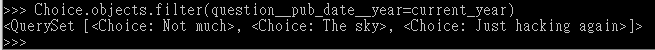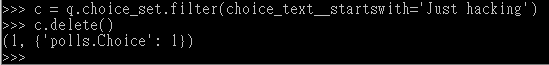 c = q.choice_set.filter(choice_text__startswith='Just hacking')