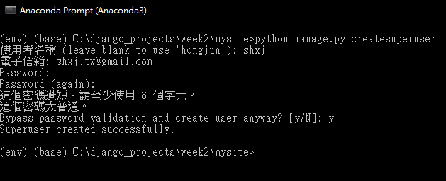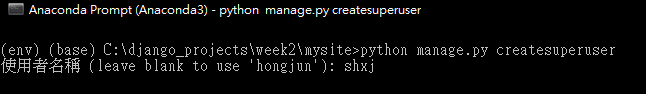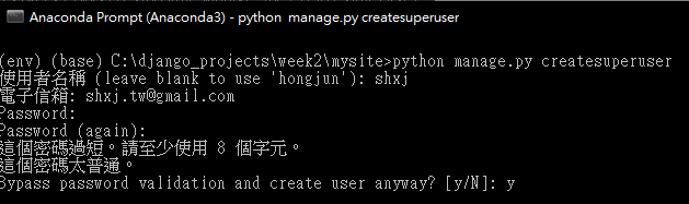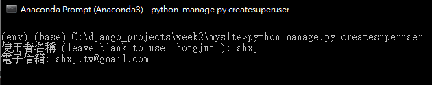 輸入以下的指令建立一個超級使用者(管理員)帳號